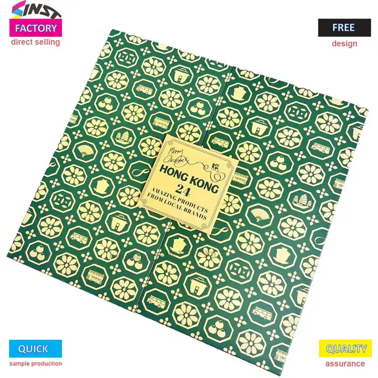 Hoc Adventus Calendarium Doni Box notat ferias countdown designandas cum 24 femoralibus et 1 speciali cellula, perfecte restituens affectum caeremoniale Nativitatis in arca. Idoneus est variis productis ut scelerisque, pulchritudinis exempla, et accessoriis parvis; Altus viridis color paribus ffoyle aureis imprimendis, per formas skylineas et stellas completa, non solum textura altam exit, sed etiam atmosphaeram festivam exit, fasciae ostentationem perquam venustam faciens.