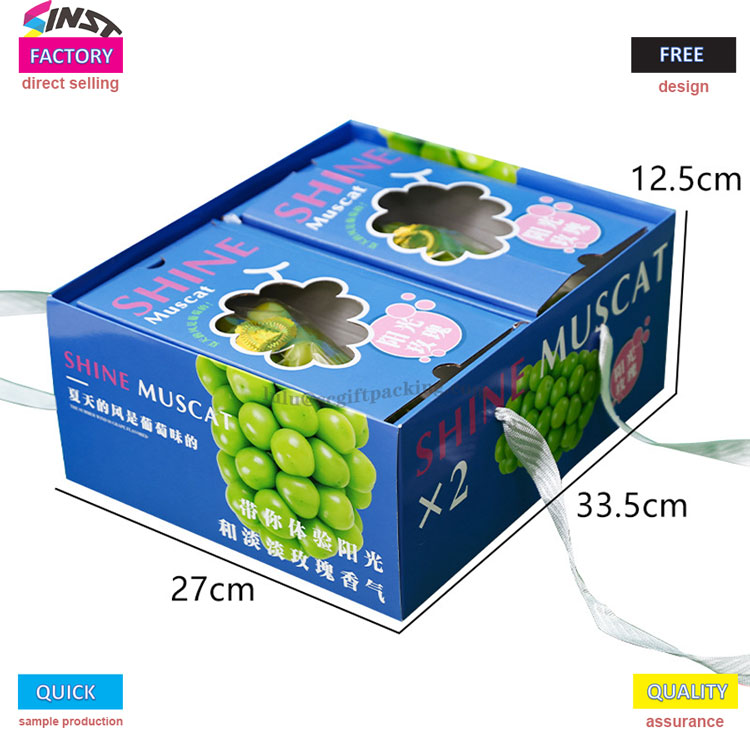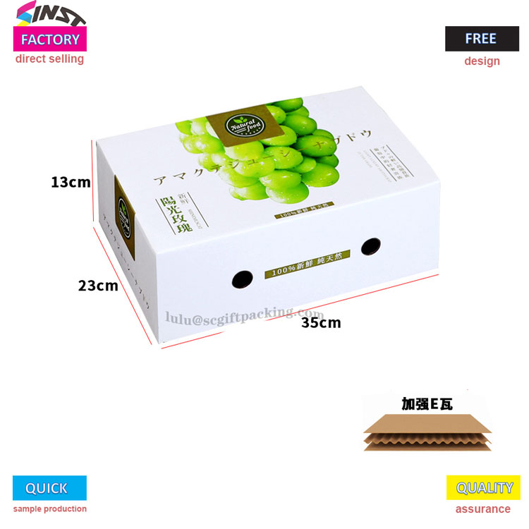 Fructus universalis Handheld donum arca enim uvas factum est a confirmat E-corrugated cardboard materiam, cum clara uva exemplar typis super superficiem. Est paria cum viridis portans lorum in vertice et notam logo typis in arca corpus, scilicet, ut nostrae core Service philosophia - non opus est ad intermediarii ad massa productio, et totius ex lectio ad massa productio est managed in fabrica.
