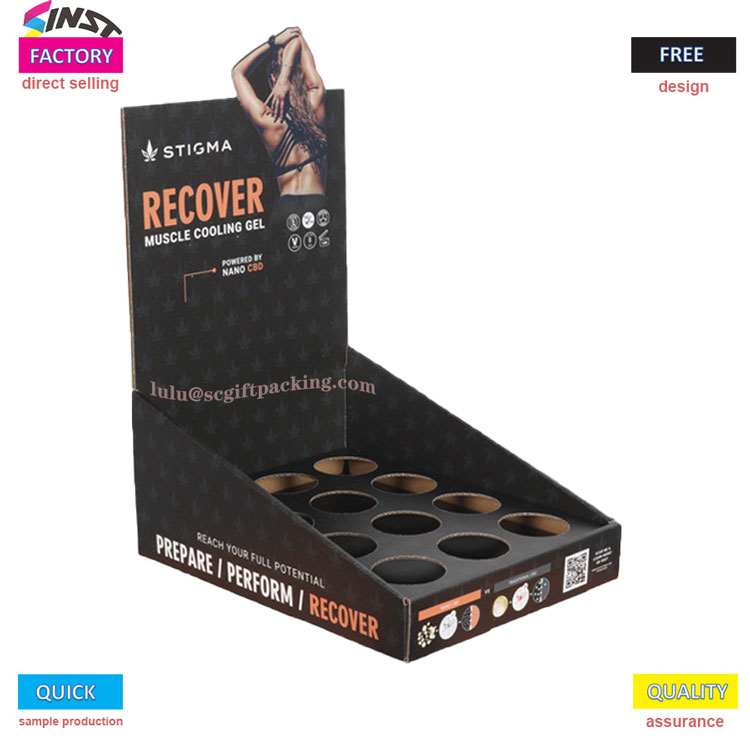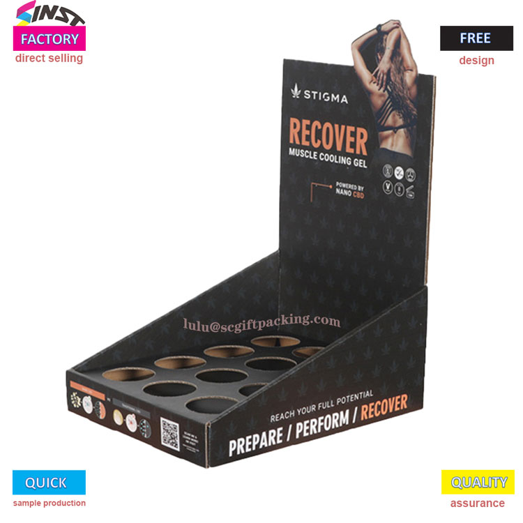Haec sanitas productum charta display eculeo est Lemma circa salutem, importans patet notitia de ingredient salus et efficaciam. Display eculeo adoptat consilio structuram vacua spatia, quae melius stabiliendum products; Pelagus est de 3mm densissima environmentally amica cardboard, operuit matte waterproof amet superficie, quod est, repugnant, lutum repugnant, non facile laedi, et non facile deformis longa ostentationem. Omnes printing inks transierunt salus testis, cum non odor aut color evacuat, cursus salute et environmental praesidium sive in shopping malls, thesauras, aut exhibition venues.